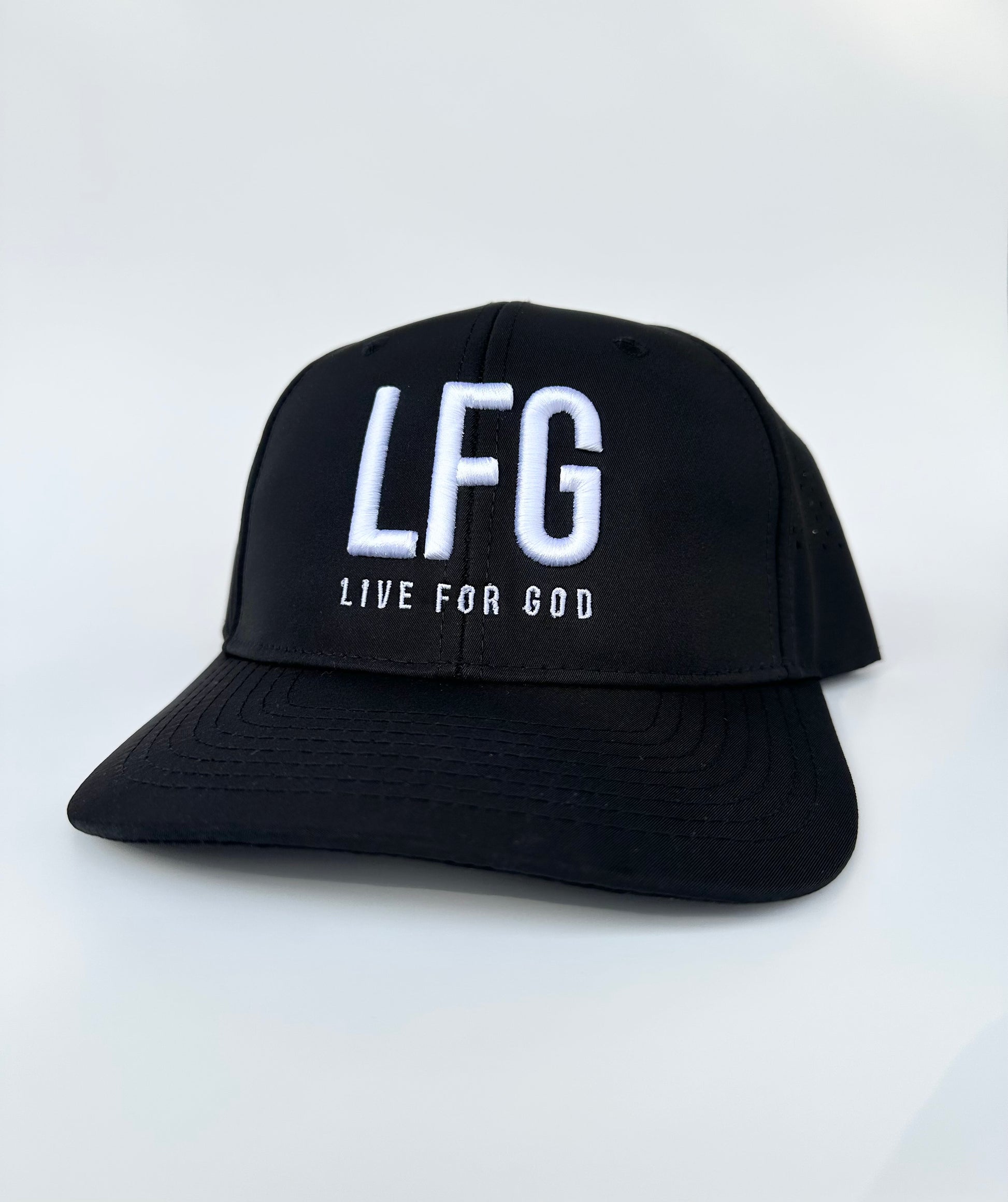LIVE FOR GOD Performance Hat. This design embodies exactly what we do at Rio+Rose. We took the popular "LFG" and made a counter-cultural version of it for God!